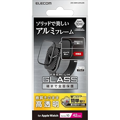 • Elecom AW-24BFLGFALBK Apple Watch Glass Film, 1.7 inches (42 mm), Series 10 Aluminum Frame, High Transparent, Includes Adhesive Fixture, Black