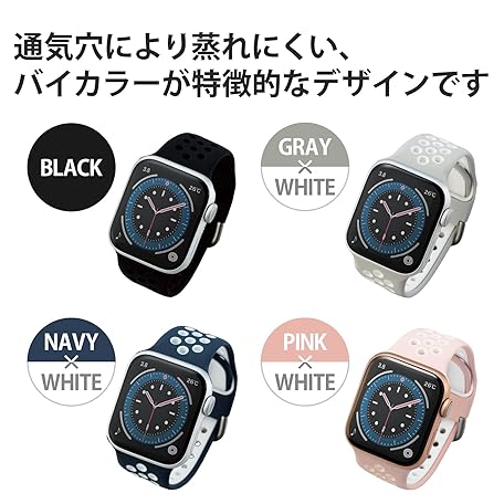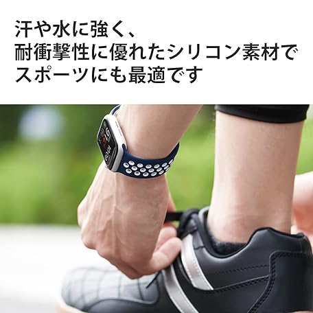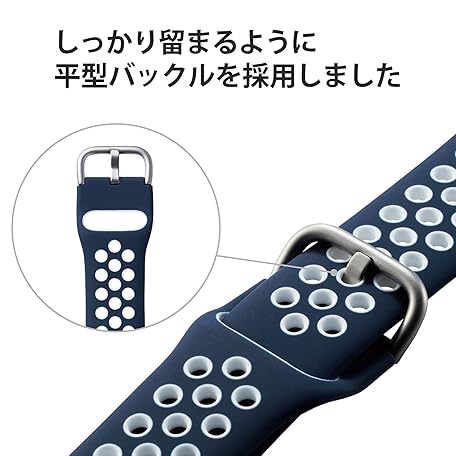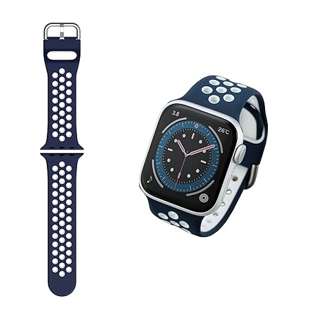 • Elecom AW-40BDSCNNV Apple Watch Band, 1.6 inches (41 mm), 1.6 inches (40 mm), 1.5 inches (38 mm), Compatible with Apple Watch 8 7 SE2 SE 6 5 4 3 2 1 Silicone Active Type Ventilation Holes Navy x White