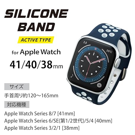 Elecom AW-40BDSCNNV Apple Watch Band, 1.6 inches (41 mm), 1.6 inches (40 mm), 1.5 inches (38 mm), Compatible with Apple Watch 8 7 SE2 SE 6 5 4 3 2 1 Silicone Active Type Ventilation Holes Navy x White