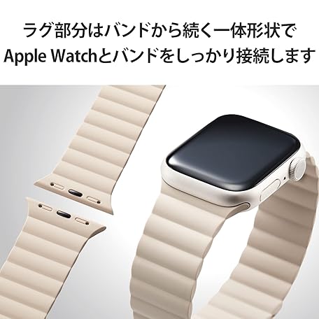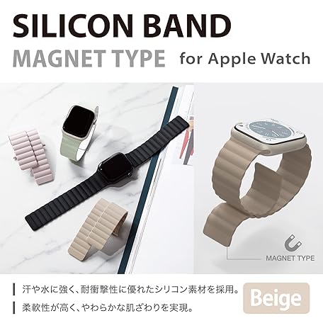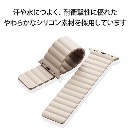 • Elecom AW-41BDMAGBE Apple Watch Band, 1.6 inches (41 mm), 1.6 inches (40 mm), 1.5 inches (38 mm) / SE2 SE 8, 7, 6, 5, 4, 3, 2 1, Silicone, Magnet, Easy Installation, Beige