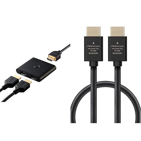 Elecom HDMI Switcher, 4K 60Hz, 2 Inputs, 1 Output, Bi-Directional, Thin (0.5 inches (12 mm), Splitter, PS5/4, Nintendo Switch, Fire TV Stick, Etc., DH-SW4KBD21BK/E + HDMI Cable, 3.3 ft (1 m), Premium