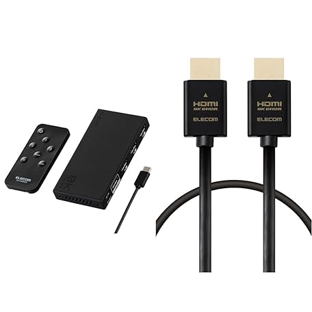 Elecom HDMI Switcher, 8K, 60Hz, 3 Inputs, 1 Output, Remote Control, Selectable Automatic and Manual Switch, DH-SW8KB31BK/E + HDMI Cable, 3.3 ft (1 m), Ultra High Speed 4K (120Hz), 8K (60Hz), 48Gbps