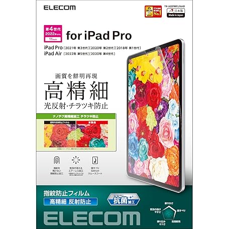 Elecom iPad Pro 11 4th Generation 3rd Generation 2021 2020 2018 iPad Air 5th Generation (2022/2020) Protective Film Anti-Glare Anti-Fingerprint High Definition TB-A22PMFLFAHD Clear