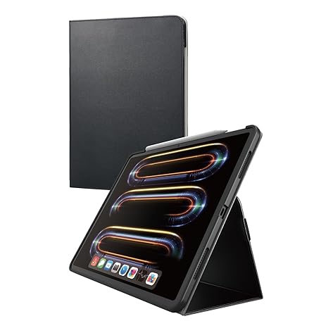 Elecom New iPad Pro 13 Inch iPad Pro (M4) 2024 Case, Soft Leather, Shock Absorption, 2 Stand Modes with Stylus Holder, Black TB-A24PLPLF2BK