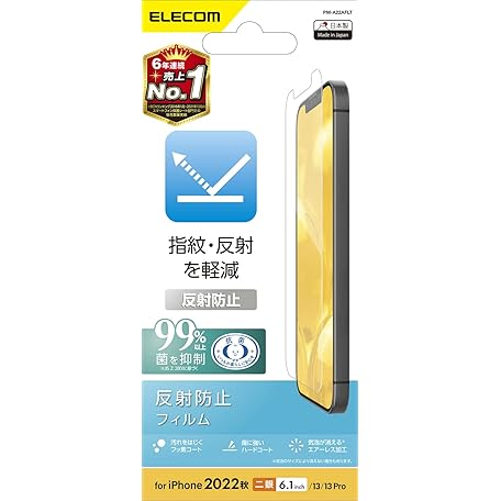 Elecom PM-A22AFLT iPhone 14 / 13 / 13 Pro Film Anti-Glare, Anti-Glare, Antibacterial, Anti-Fingerprint, Matte Airless, Clear