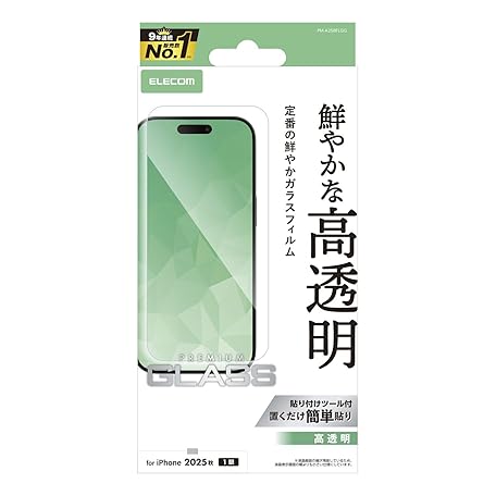 Elecom PM-A25BFLGG iPhone Air Glass Film, Glossy, Tempered Glass, 10H Hardness, Shatterproof Design, Fingerprints, Bubble Free, Installation Tool Included