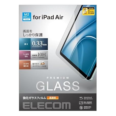 Thông tin sản phẩm Elecom TB-A24MFLGG iPad Air 11-inch iPad Air (M2) 2024 Model with Guide Frame, Glass Film, Anti-Fingerprint, Tempered Glass, Easy to Apply, Repositionable, Protective Film Cover