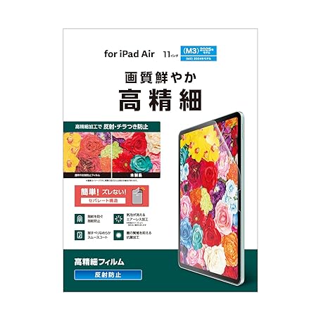 Elecom TB-A25MFLFAHD iPad Air 11 Inch (M3/M2) 2025/2024 Film, Anti-Fingerprint, Anti-Glare, High Definition, Easy to Apply, Repositionable