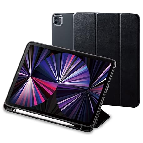 Elecom TBWA21PMWVSABK iPad Pro 11 4th/3/2nd Generation (2022/2021/2020) Case TPU Material Leather Case Folio Stand (2 Angles) Apple Pencil Storage, Pen Stand, Auto Sleep/Wake Compatible,