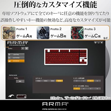 Thông tin sản phẩm Elecom TK-ARMA30BK USB-A Gaming Keyboard, Mechanical, Unique Thin Design, Compact, 50 Million Times Durable Switch, Japanese Arrangement, LED Included, Black