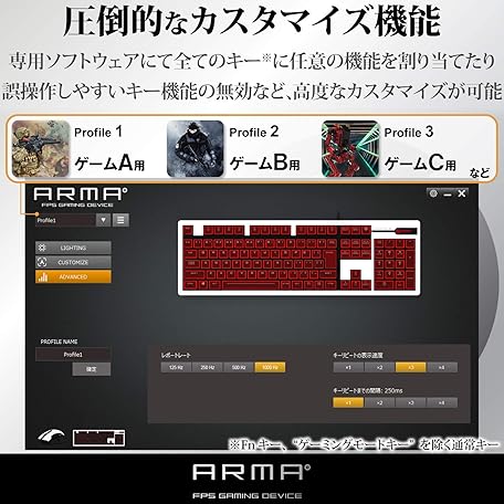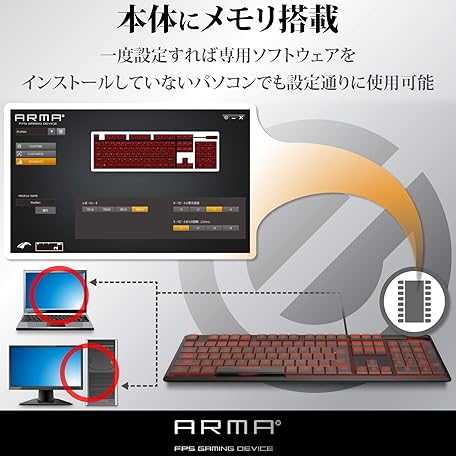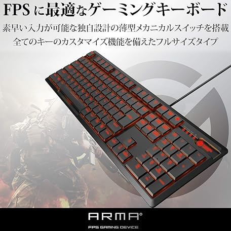 Thông tin sản phẩm Elecom TK-ARMA50BK Gaming Keyboard, Mechanical, Unique Thin Design, Full Size, 50 Million Times Durable Switch, Japanese Arrangement, LED Included, Black