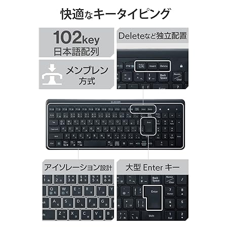 Thông tin sản phẩm Elecom TK-QT30DMBK Wireless Keyboard, Quiet, Numeric Keypad, Thin, Compact Size, Compatible with Windows ChromeOS and MacOS (Black)