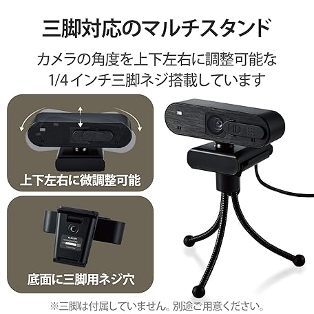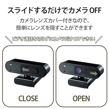 Thông tin sản phẩm Elecom UCAM-C820ABBK Web Camera, Full HD, 1080p, 30FPS, 2 Megapixels, Autofocus, Built-in Microphone, Privacy Shutter, 1/4 Inch Tripod Hole, Cable Length 5.9 ft (1.5 m), Black