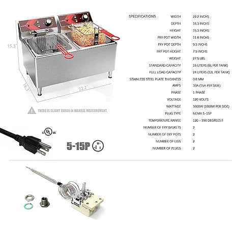 Sản phẩm Electric Fryer, Commercial Fryer 12L x 2 Large Dual Tank Electric Fryer with Basket Electric Countertop Fryer for Restaurant (12L liquefied/natural gas) đang được bán với giá ưu đãi là $357.2039 tại nước Nhật.