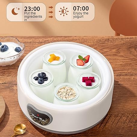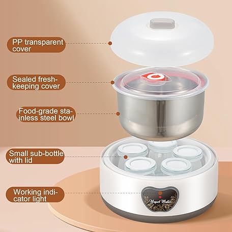Electric Yogurt Maker Machine, Yogurt Maker Machine - Yogurt Maker with Reusable 5 Cup Yogurt Maker - Home Yogurt Incubator Clock Pot for Homemade Containers, Home Kitchen