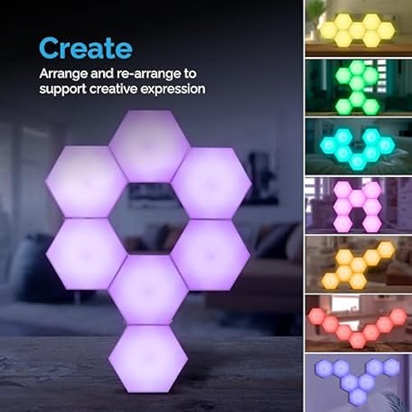 Thông tin sản phẩm Emberela HEXlights 7-Pack Hexagon Light, Touch and Remote Controlled RGB Wall Panel, Hexagon LED Light Panel - Living Room, Bedroom, Game Room Decoration - Includes Stand for Table Top