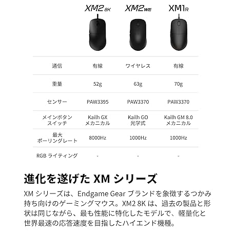 Thông tin sản phẩm ENDGAME GEAR XM2 8k Gaming Mouse - 8000Hz Polling Rate, Kailh GX Switch, PixArt PAW3395 Sensor Ultra Light 52g Black Edition