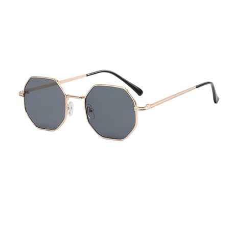 ENTHYI Polygon Sunglasses Women Men Vintage Octagon Metal Sunglasses, Gold Black, M, gold black, M