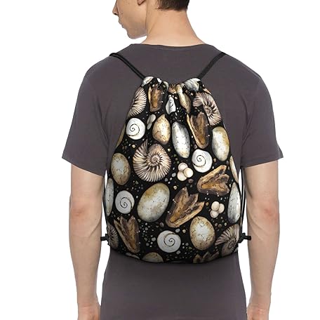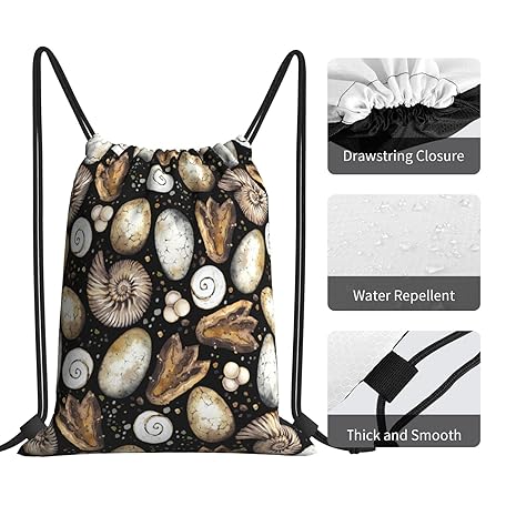 • [ESASAV] 恐竜の化石と植物 巾着 収納 大容量 防水 軽量 折り畳み 収納バッグ エコバッグ 巾着袋 水泳 運動 旅行 アウトドア