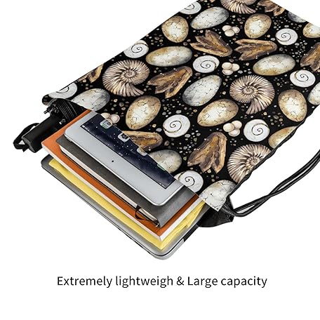 [ESASAV] 恐竜の化石と植物 巾着 収納 大容量 防水 軽量 折り畳み 収納バッグ エコバッグ 巾着袋 水泳 運動 旅行 アウトドア