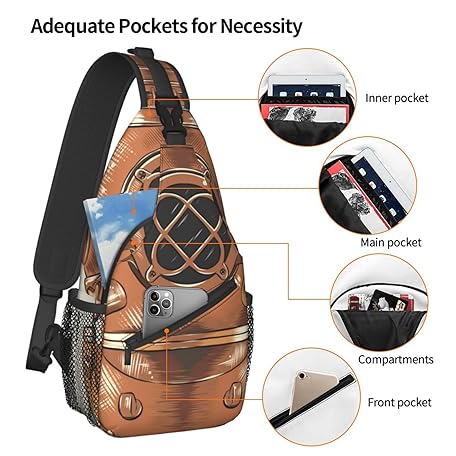 [ESISAMT] ダイビングヘルメット クロスショルダーバッグ 斜め掛け ワンショルダーバッグ 斜めがけ チェストバッグ 胸バッグ 左右肩掛け可能 スポーツバッグ 通学バッグ 多機能 男女兼用