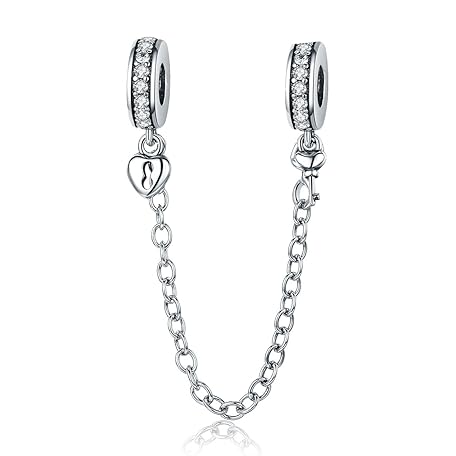 Eternalll Jewellery 925スターリングシルバー安全チェーンチャームビーズラブハートフラワースノーフレークボウクリアCZクリスタルストッパーロッククリップビーズレディースDIYジュエリーブレスレットまたはヨーロピアンスネークチェーンチャームに適合, シルバー, キュービックジルコニア