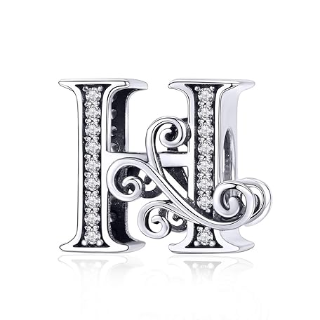 Eternalll Jewellery - Womens Spacer Beads Genuine 925 Sterling Silver Charms Vintage A to Z Letters Alphabet Charms Fit Pandora Beads Bracelets Original Charms DIY Jewelry, h
