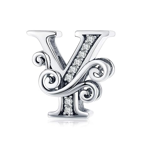 Eternalll Jewellery - Womens Spacer Beads Genuine 925 Sterling Silver Charms Vintage A to Z Letters Alphabet Charms Fit Pandora Beads Bracelets Original Charms DIY Jewelry, y