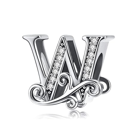 Eternalll Jewellery - Women's Spacer Beads Genuine 925 Sterling Silver Charms Vintage A-Z Letter Alphabet Charms Fit Pandora Bead Bracelets Original Charm DIY Jewelry, Sterling Silver, na