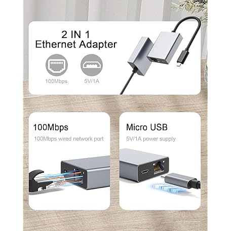 Thông tin sản phẩm Ethernet Adapter for Fire TV Stick, YEZriler Micro USB to RJ45 Ethernet Adapter for Fire TV Stick/4K/4K Max, Fire TV Cube, Chromecast Ultra Audio, Micro USB to Ethernet Adapter - Gray