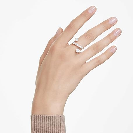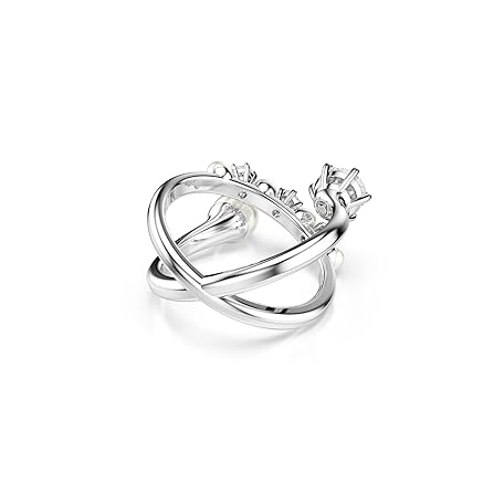 スワロフスキー マトリックス カクテルリング、クリスタルパール、ラウンドカット、クリア、ロジウム仕上げ, EU 55 (US 6.75), クリスタル, クリスタル