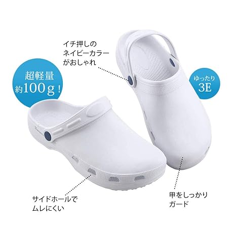 Thông tin sản phẩm Nurse Nurse EVA Clog, Medical Nurse, Lightweight, Nurse Sandals, Wide 3E, 2-Way, white