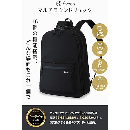 Sản phẩm Evoon Multi-Round Business Backpack, Men's, Women's, Lightweight, Water Repellent, Rucksack, Backpack, 7.6 gal (20 L), Popular, 15.6 Inches, Black, 20 L đang được bán với giá ưu đãi là $107.6266 tại nước Nhật.