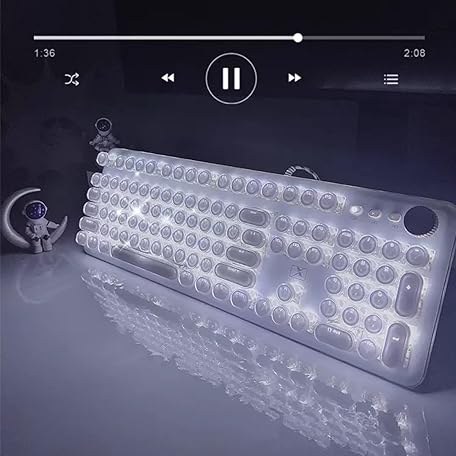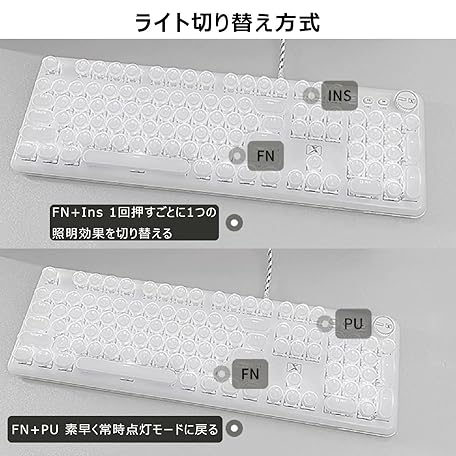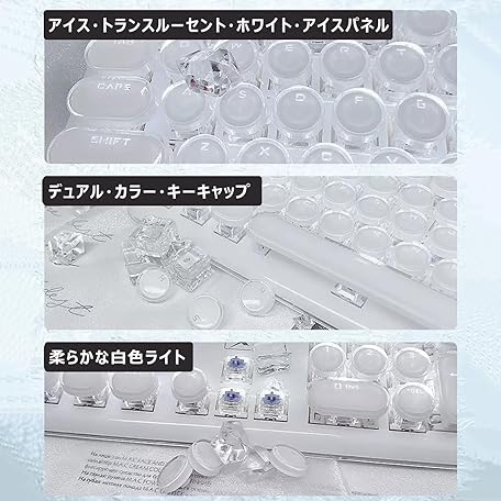 • EWEADN K520 クリスタルクリア メカニカルキーボード 104キー タイプライター風キーボード 透明キーキャップ アンチゴースト RGBバックライト付き Windows/Mac対応 有線キーボード プラグアンドプレイ オフィス&ゲーミング用 英語配列(クリスタル・ホワイト)