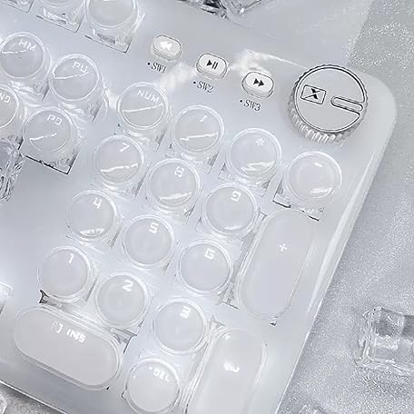 Thông tin sản phẩm EWEADN K520 クリスタルクリア メカニカルキーボード 104キー タイプライター風キーボード 透明キーキャップ アンチゴースト RGBバックライト付き Windows/Mac対応 有線キーボード プラグアンドプレイ オフィス&ゲーミング用 英語配列(クリスタル・ホワイト)