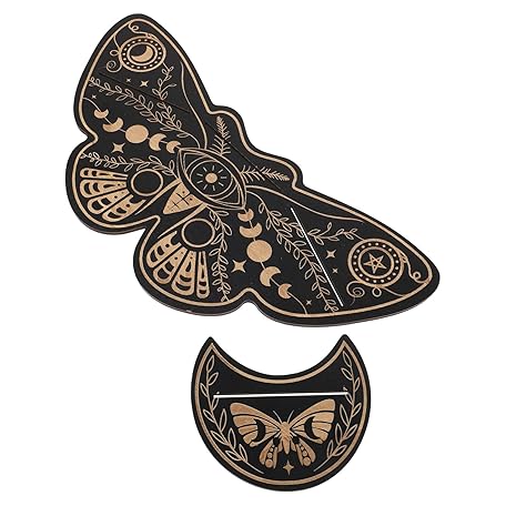 • EXAOMBLE 2個木製タロットカードホルダー 蝶と月相モチーフの装飾的な祭壇スタンド 占い 魔術用の耐久性ある台座 タロットカード整理にな安