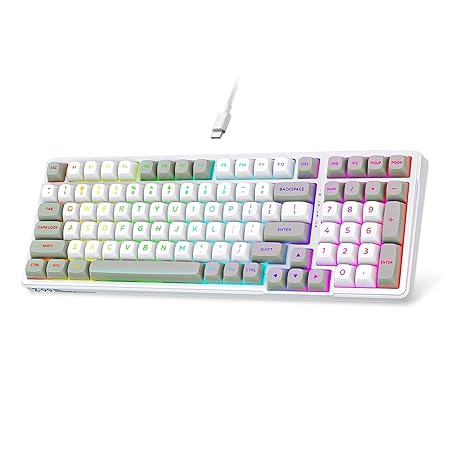 • e元素ゲーミングキーボードZ-99 シルバーウッド軸メカニカルキーボード USB有線接続英語配列99キー 全キーホットスワップ 銀軸を採用 メカニカル式ゲーム用キーボード RGBバックライト付き 全キー防衝突 Windows/Macに対応(ホワイト・グレー・ブラック)