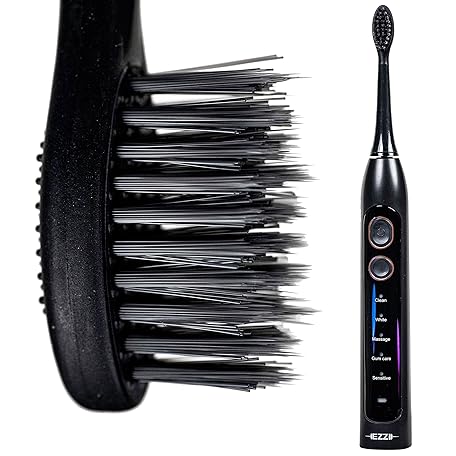 EZZI Sonic Electric Toothbrush | Soft Tapered Bristles | 60-Day Rechargeable Battery | 42,000 Vibrations/Min | for Adults, Sensitive Teeth, Receding Gums, Whitening, Gum Disease, Braces, Travel