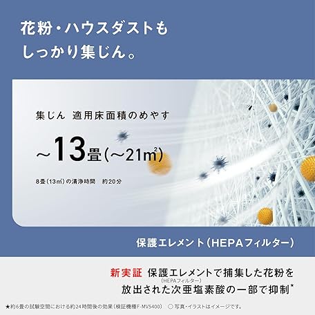Thông tin sản phẩm パナソニック ジアイーノ ホワイト F-MV1300-W ~8畳 除菌 脱臭 集じん 次亜塩素酸で空気を洗う 空間除菌脱臭機 書斎や子供部屋などの個室に