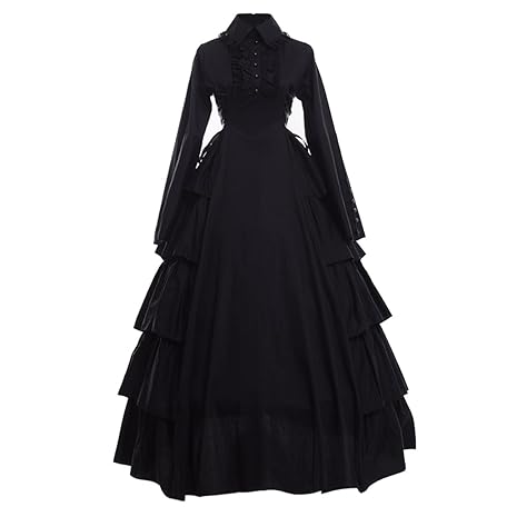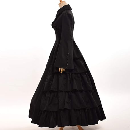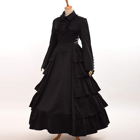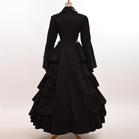 • [FAD-4U] Gothic Lolita Dress, Black, Medieval European Style, Long Sleeve, Long Size, Cosplay, Costume, Halloween, Photography, Concerts, Stage Costume, Black, XL