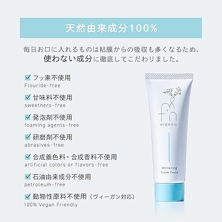 • Fan Organic Toothpaste, Whitening Gel, Additive-free, Bad Breath Care, Fluorine-free, Non-Abrasive, 2.8 oz (80 g)