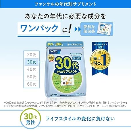 Sản phẩm FANCL (FANCL) (New) Supplement for Men from 30s, 15-30 Days Supply (30 Bags), Age Supplement (Vitamin/Zinc/GABA) Individual Packaging đang được bán với giá ưu đãi là $18.8679 tại nước Nhật.