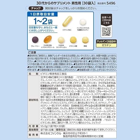 Thông tin sản phẩm FANCL (FANCL) (New) Supplement for Men from 30s, 15-30 Days Supply (30 Bags), Age Supplement (Vitamin/Zinc/GABA) Individual Packaging