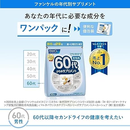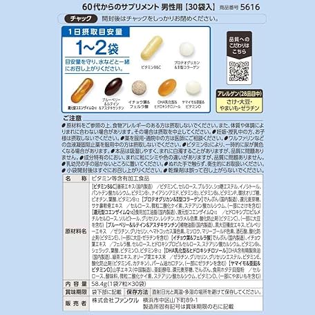 Thông tin sản phẩm FANCL (FANCL) (New) Supplements for Men from 60s, 15-30 Days Supply (30 Bags), Age Supplements (Vitamin/Minerals/Collagen) Individually Packaged