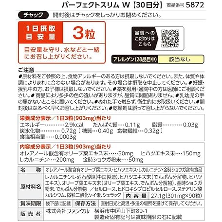FANCL Perfect Slim W (30 Day Supplement, Diet (Before Workout), Health Maintenance, Diet Support, Ginger