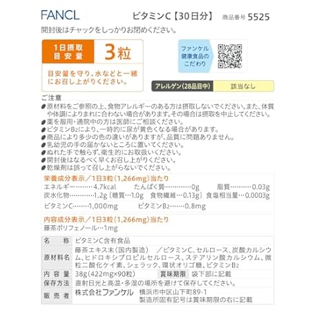Sản phẩm FANCL Vitamin C 90 Day Supply (30 Day Supply x 3 Bags) [Dietary Supplement] Supplement (Vitamin B2 / Aging Care), Supplement for Lack of Meals đang được bán với giá ưu đãi là $8.2513 tại nước Nhật.