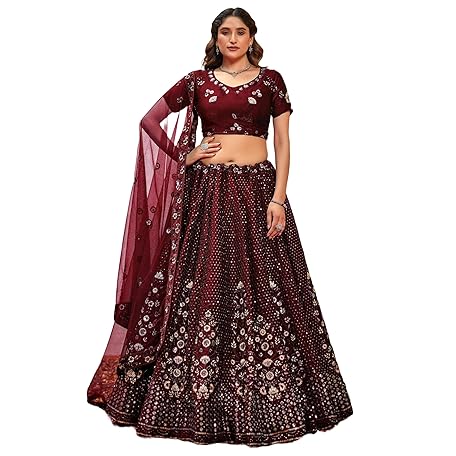 FASHION BAZAR 365 レディース フェンディ シルク シーケンス刺繍入り ワーク パーティーウェア Lehenga 10989, レッド, Large