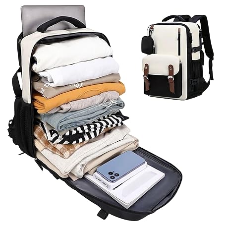 [Fcezehyt] Men Travel Rucksack - Waterproof Business Carry Backpack Daypack, Computer Bag for Students, Work, Travel, Unisex, black white