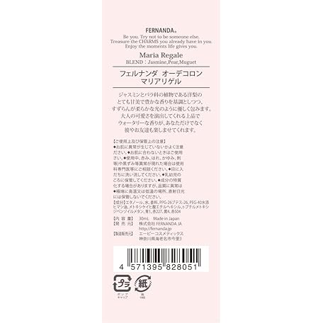 Thương hiệu FERNANDA(フェルナンダ) là cái tên nổi tiếng được rất nhiều khách hàng trên thế giới chọn lựa. Với kiểu dáng đẹp mắt, sang trọng, sản phẩm FERNANDA Eau de Cologne Maria Regale là sự lựa chọn hoàn hảo nếu bạn đang tìm mua một món cho riêng mình.