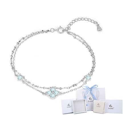 • FH.bird Sapphire Bracelet, Women's, September Birthstone, Four Leaf Clover, Ribbon Packaging, Silver, 925, Hypoallergenic Metal, 2 Row Bracelet, Simple, Birthday Gift, Girlfriend